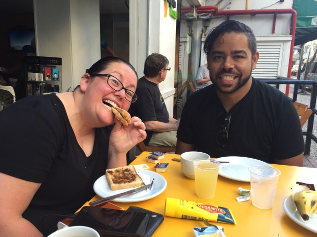 I woke up mildly grumpy the next morning and grumbled about people turning the lights on when others were asleep. I was countered by V with the reasoning “that’s just hostel life”. Let’s just file that phrase for a bit shall we, because on this trip, karma played out beautifully, it should be an Olympic sport or something. Today was going to be a big day. Between people having hangovers, and pure laziness, we pretty much had to cram sightseeing into one day. And of course it had to be the bloody day the Opening Ceremony was on. The German girl from the first night gave us a handy tip to visit the big ass Jesus statue first thing in the morning when the crowds weren’t as intense. So we went down for a quick breakfast, where the others were excited to find out that I had brought a tube of Vegemite with me on the trip. For such lovers of Vegemite, I was surprised that none of them had ever thought to bring a tube, that’s WHY they sell it in tubes. Who actually buys a tube for home consumption? You always get a jar for home, even if it’s a small jar. I always figured the tube was for travellers or camping. I watched in mild horror as the others liberally applied the precious little tube of Vegemite to their toast, silently cursing at them should I run out before the end of the trip.