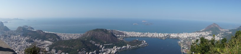 Once the tickets were in hand, we went back to the hostel and put them under lock and key. Naturally, V was still hungover and wanted a nap, and R was still feeling ill. Not wanting to waste a beautiful day I decided to head out for a walk along the beach. I invited M along otherwise I knew he’d just bum around the hostel and play a game on his phone while V napped. We headed down the road to Ipanema beach and just walked the whole length, taking in the sights, namely the very fit people playing soccer or volleyball on the sand. Getting to the end of the beach, we hiked up the rocky outcrop that hinged between Ipanema and Copacobana. Along the beach, there were people hawking their wares, you could get everything from hammocks, to Brazil paraphernalia. I finally caved when we got to the lookout, my trusty green sunglasses had cracked at some point during the Galápagos cruise, and I MacGyvered a bandaid fix (literally) using sports strapping tape I had in my first aid kit, but it was time to get a new pair. I dearly wanted another green pair, but I like my mirrored lenses, they prove handy when you’re trying to peeve on someone without them noticing… I ended up getting a blue/black pair with blue mirrored lenses for the pricey sum of R$10 (that converts to around AU$4..), and of course, one of the arms came off within 5 steps from buying them. Luckily they pop back in pretty easily, though it would come off fairly often for the rest of the trip. Still, they were better than nothing, and my gree sunnies were looking a little worse for wear.